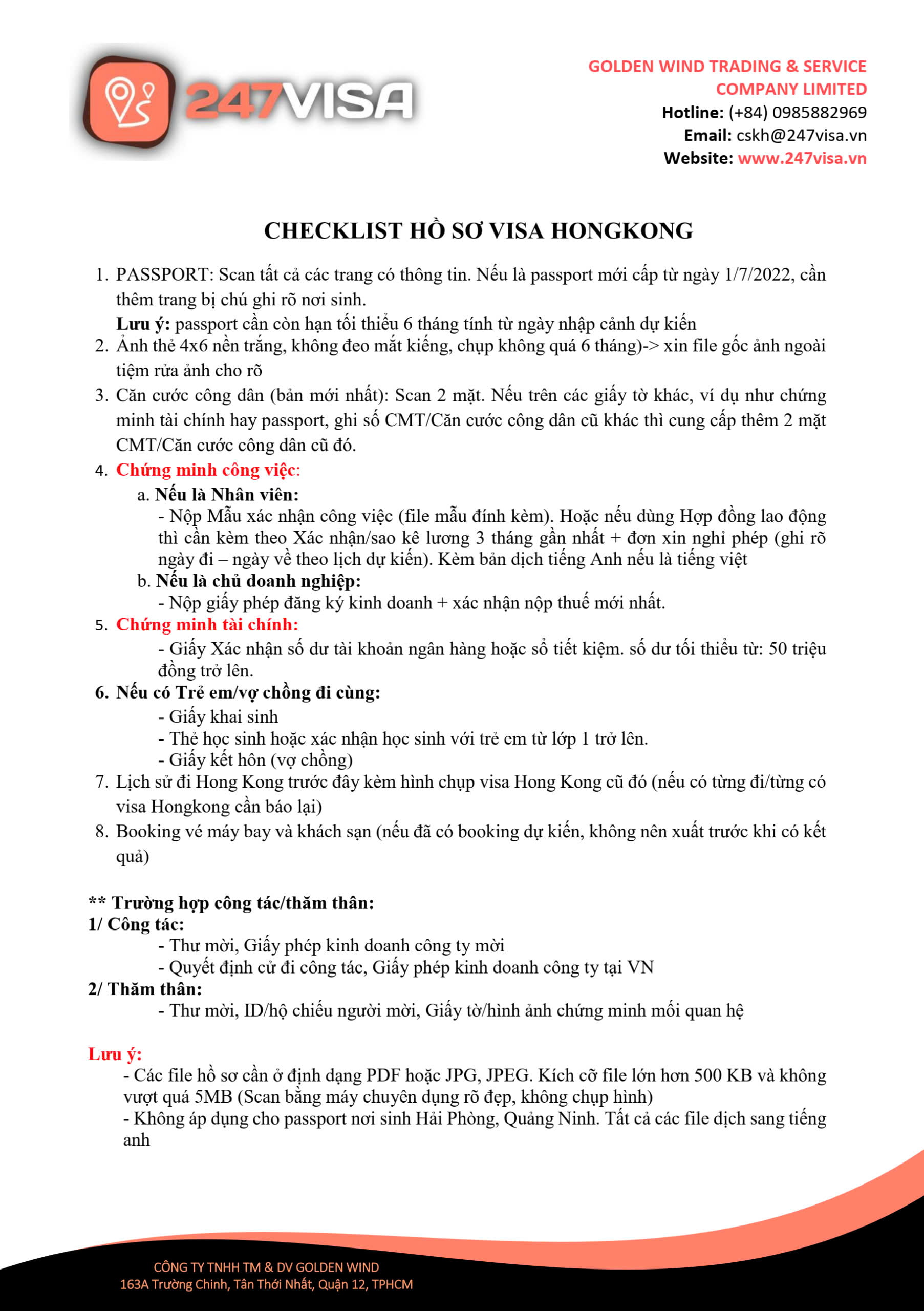 Thủ tục hồ sơ xin thị thực (Visa) Hongkong